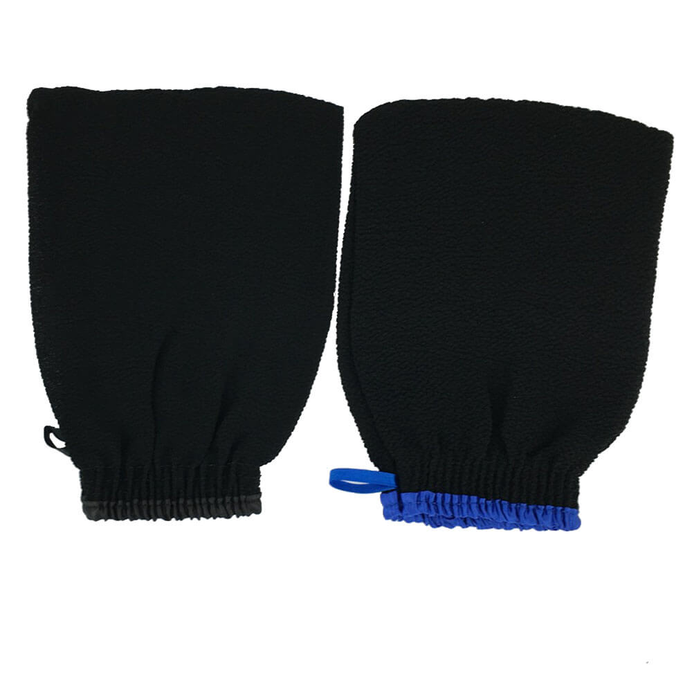 - As it shrinks after soaked in water, it needs to be stretched back to tightly fit user’s hand to provide the best surface tension and the rough feel idealized for exfoliating purposes.